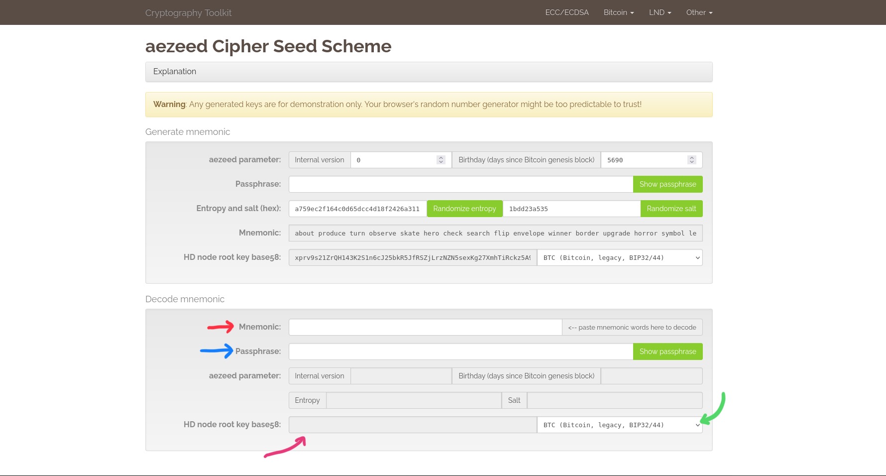 We will use the Guggero Cryptography Toolkit to convert our Aezeed seed to a HD key.