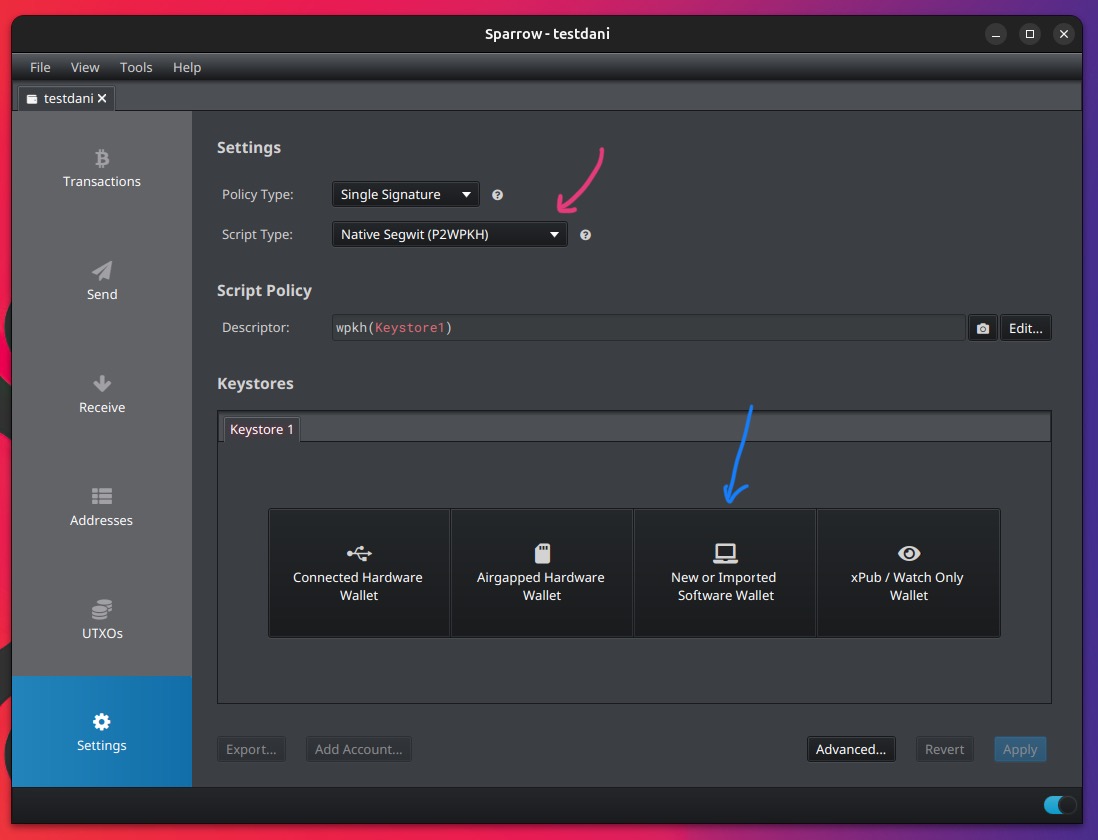 Select the Script type based on the wallet you want to import (refer to step 0):