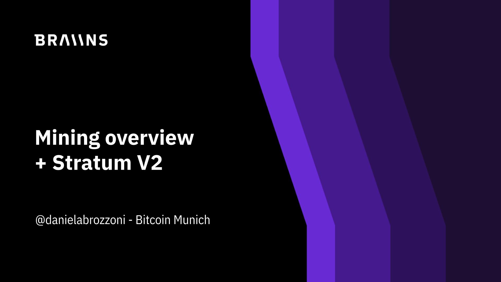 Talk Mining overview + Stratum V2 @ Bitcoin Munich A little introduction on what's mining followed by an in-depth explanation of the Stratum V2 protocol. Here’s the link to the meetup, and here’s the Youtube stream. Thanks Bitcoin Munich for having me! Slides